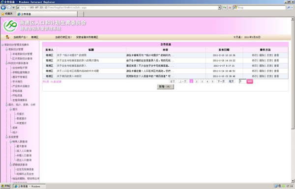 | 一、在育齡婦女管理系統(tǒng)基礎(chǔ)上的涵蓋計生科技服務(wù)全程服務(wù)的管理軟件,彌補了育齡婦女管理系統(tǒng)無科技服務(wù)內(nèi)容的空白。 二、建立一整套的育齡婦女個人生殖保健服務(wù)信息,為今后的育齡婦女提供服務(wù)建立基礎(chǔ)平臺;整個系統(tǒng)涵蓋計劃生育科技工作中的所有內(nèi)容,同時建立起電子病歷系統(tǒng),實現(xiàn)無紙化辦公,也有利于今后的病歷查詢。 三、本系統(tǒng)基本上擁有WIS的所有功能。和WIS系統(tǒng)基礎(chǔ)數(shù)據(jù)一致,可一次性導(dǎo)入WIS系統(tǒng)基礎(chǔ)數(shù)據(jù),不需要重新錄入數(shù)據(jù)庫的基礎(chǔ)數(shù)據(jù)。 四、建立村級錄入用戶,可及時準確地錄入育齡婦女的基礎(chǔ)信息,保證了基礎(chǔ)信息的準確及時。隨時隨地的查詢和統(tǒng)計避免了統(tǒng)計和分析因省WIS數(shù)據(jù)下載的滯后而帶來的困擾。 五、強大的查詢、提示、統(tǒng)計、分析功能,即可隨時隨地直接掌握區(qū)域內(nèi)計生工作的開展情況,也可指導(dǎo)基層開展科技服務(wù)工作;實現(xiàn)縣級直接對鄉(xiāng)村兩級計生工作的監(jiān)控和評估。 |